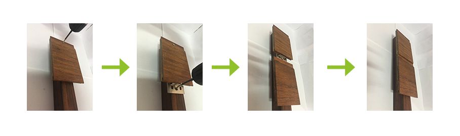 3. 위에서 아래로 두 번째 벽판까지, 설치할 벽판 면이 벽판 홈과 정렬되어 있는 한, 견고성을 조정하고 패스너로 아래쪽에 고정합니다.